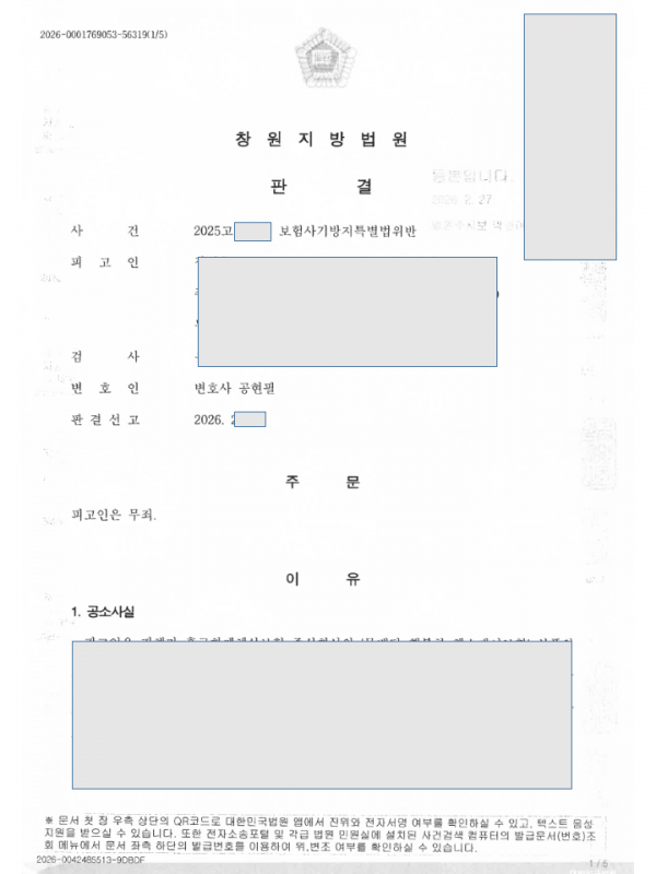 [형사] 보험사기방지특별법위반 무죄 판결 사례 페이지 정보 최고관리자 작성일26-03-17 검색 목록 본문 의뢰인에 대한 억울한 공소제기에 대하여 적극적으로 다투어 무죄판결을 받은 사례입니다. 검색 목록