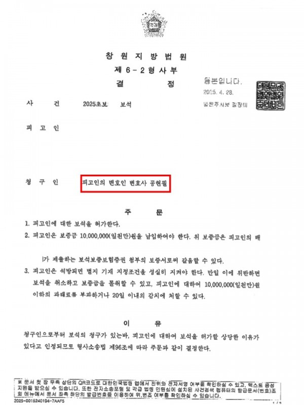 형사 구속 피고인에 대한 보석허가 사례입니다.