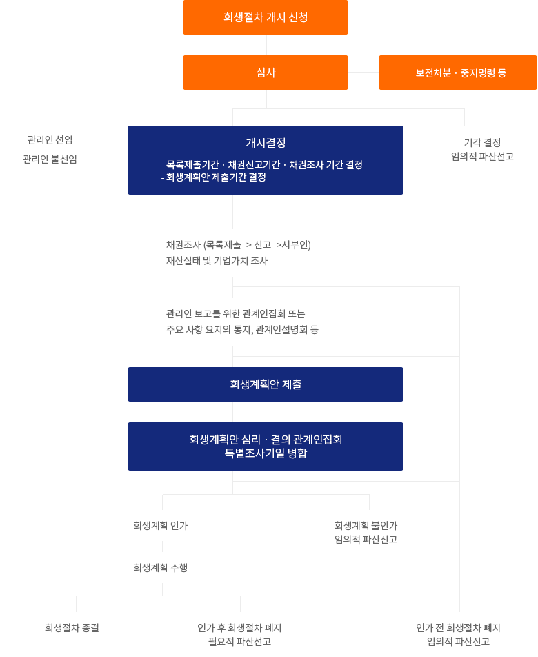 법인회생이란 재정적 어려움으로 파탄에 직면해 있는 법인인 채무자에 대하여 채권자, 주주·지분권자 등 여러 이해관계인의 법률관계를 조정하여 법인채무자 또는 그 사업의 효율적인 회생을 도모하는 제도입니다.